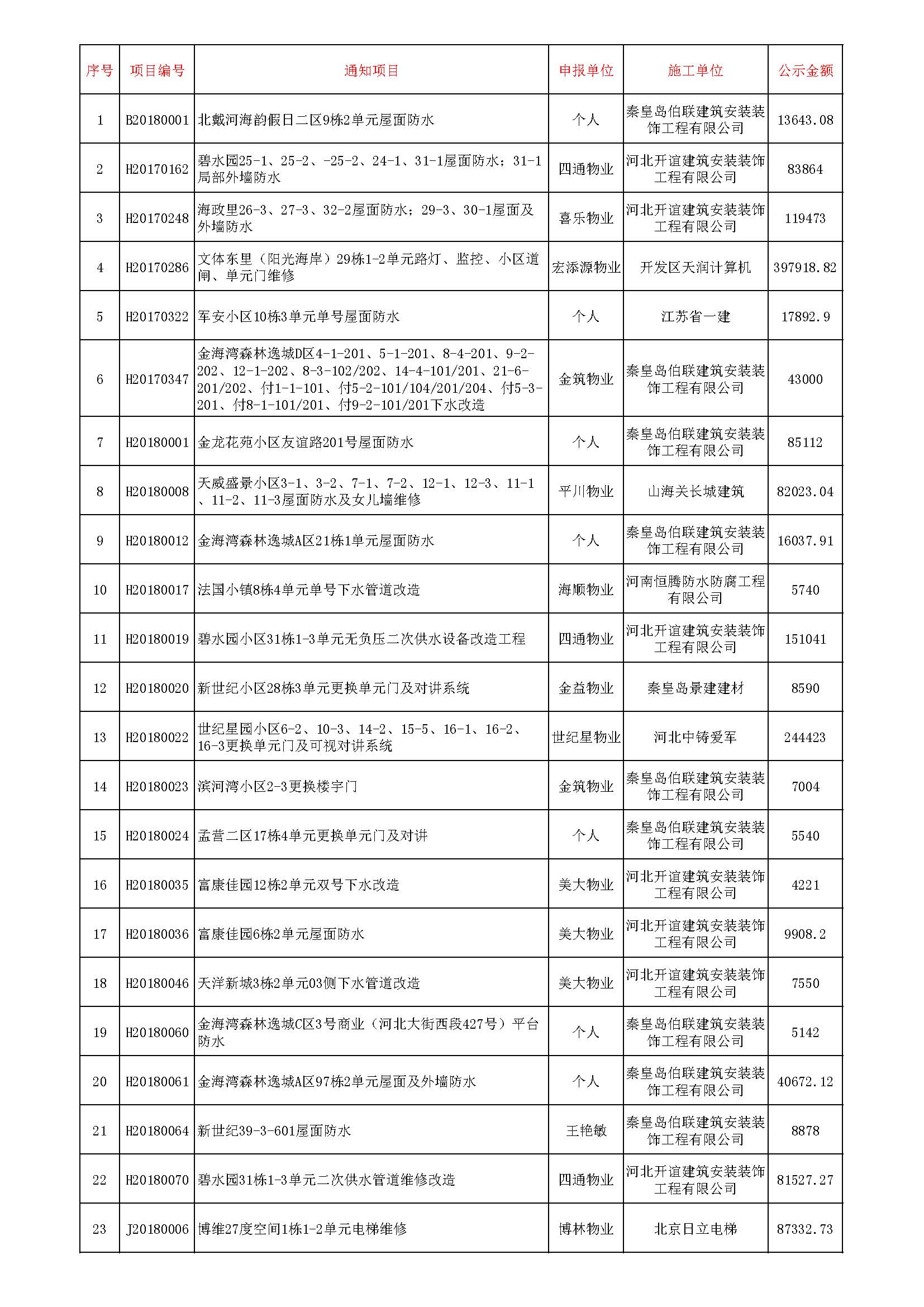 根据《住宅专项维修资金管理办法(建设部、财政部令第165号)》、《河北省住宅专项维修资金管理实施细则(冀建法【2011】788号)》及本市维修资金使用相关规定,本批次公示的项目均经申报单位/申报人申请、专有部分占建筑物总面积2/3以上的业主且占总人数2/3以上的业主签字确认、公示无异议,现准许施工,维修费用将从受益房屋坐落的业主住宅专项维修资金账户中列支。