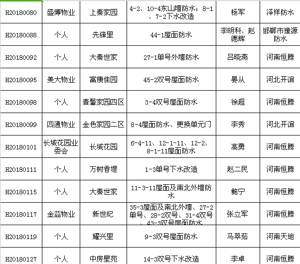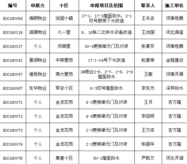 根据《住宅专项维修资金管理办法(建设部、财政部令第165号)》、《河北省住宅专项维修资金管理实施细则(冀建法【2011】788号)》及本市维修资金使用相关规定,本批次公示的项目均经申报单位/申报人申请、专有部分占建筑物总面积2/3以上的业主且占总人数2/3以上的业主签字确认、公示无异议,现准许施工,维修费用将从受益房屋坐落的业主住宅专项维修资金账户中列支。