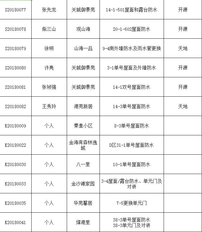 2018年7月使用住宅专项维修资金项目公示