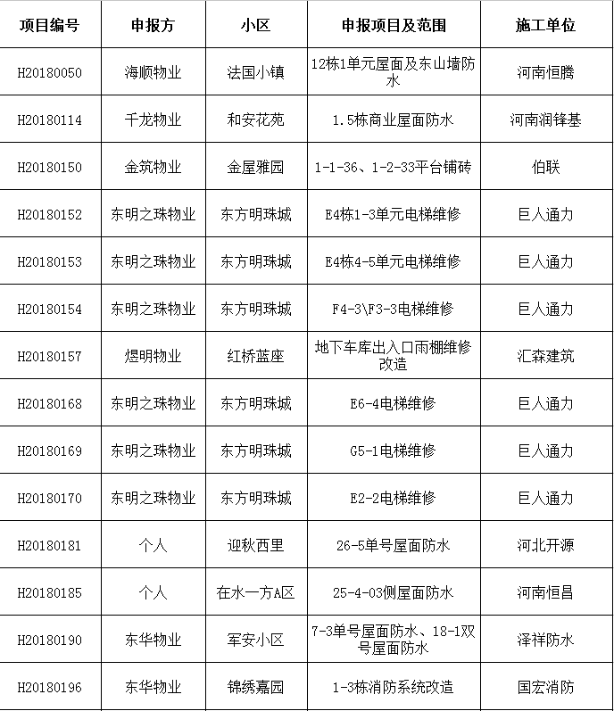 根据《住宅专项维修资金管理办法(建设部、财政部令第165号)》、《河北省住宅专项维修资金管理实施细则(冀建法【2011】788号)》及本市维修资金使用相关规定,本批次公示的项目均经申报单位/申报人申请、专有部分占建筑物总面积2/3以上的业主且占总人数2/3以上的业主签字确认、公示无异议,现准许施工,维修费用将从受益房屋坐落的业主住宅专项维修资金账户中列支。