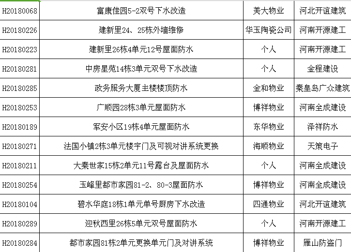 根据《住宅专项维修资金管理办法(建设部、财政部令第165号)》、《河北省住宅专项维修资金管理实施细则(冀建法【2011】788号)》及本市维修资金使用相关规定,本批次公示的项目均经申报单位/申报人申请、专有部分占建筑物总面积2/3以上的业主且占总人数2/3以上的业主签字确认、公示无异议,现准许施工,维修费用将从受益房屋坐落的业主住宅专项维修资金账户中列支。