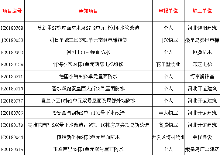 根据《住宅专项维修资金管理办法(建设部、财政部令第165号)》、《河北省住宅专项维修资金管理实施细则(冀建法【2011】788号)》及本市维修资金使用相关规定,本批次公示的项目均经申报单位/申报人申请、专有部分占建筑物总面积2/3以上的业主且占总人数2/3以上的业主签字确认、公示无异议,现准许施工,维修费用将从受益房屋坐落的业主住宅专项维修资金账户中列支。