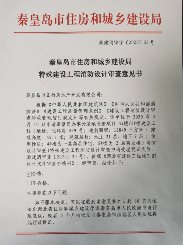 秦建消审字〔2020〕35号特殊建设工程消防设计审查意见书(正行房地产)