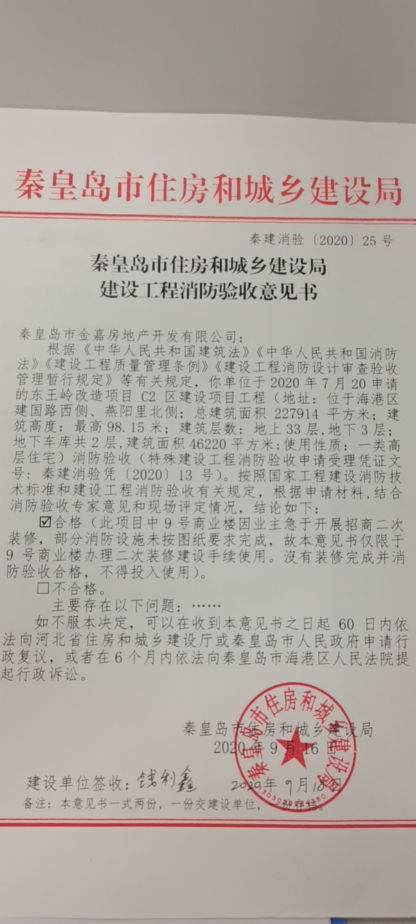 秦建消验〔2020〕25号建设工程消防验收意见书(东王岭改造项目C2区)