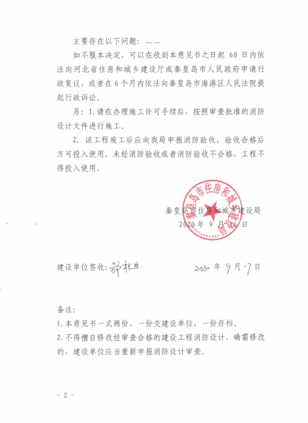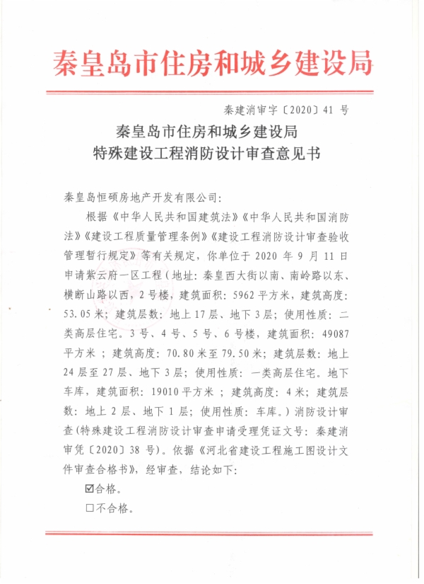 秦建消审字〔2020〕41号特殊建设工程消防设计审查意见书(紫云府一区)