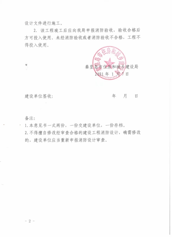秦建消审字〔2021〕1号特殊建设工程消防设计审查意见书(世纪港湾商业广场二期室内装修工程)