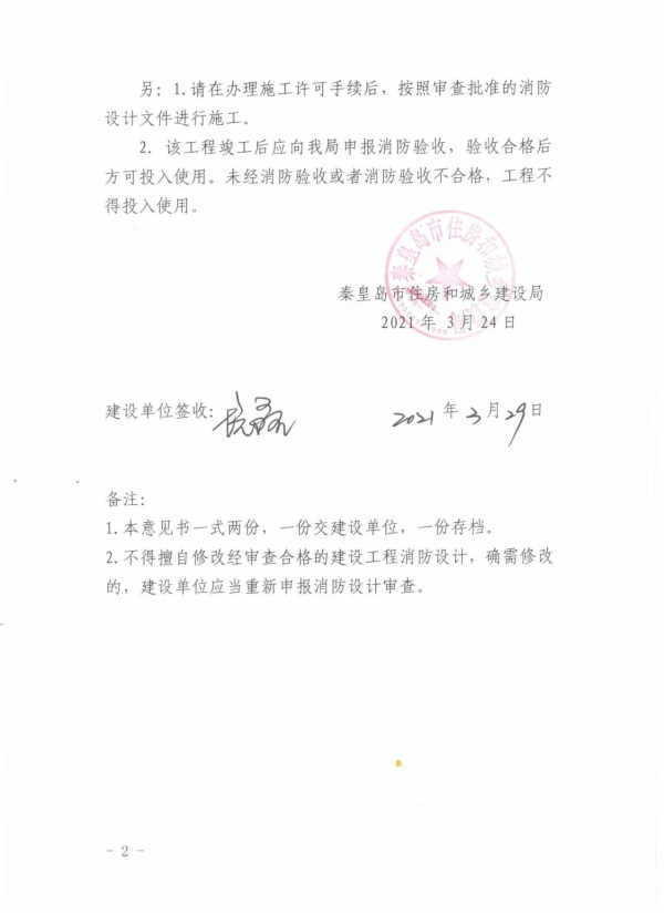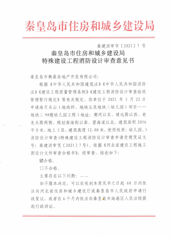 秦建消审字〔2021〕7号特殊建设工程消防设计审查意见书(海月关山(地块四、地块五及地块二幼儿园)项目--地块二9#楼幼儿园工程)