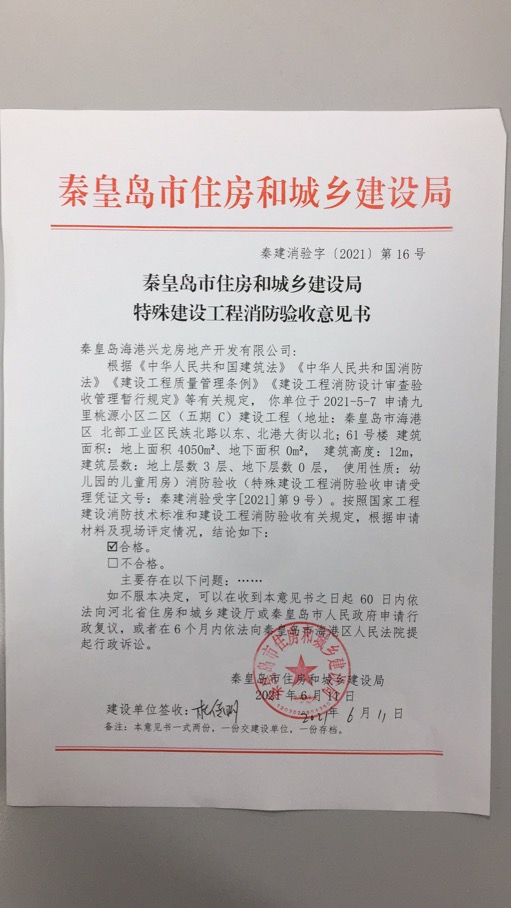 秦建消验字〔2021〕第16号特殊建设工程消防验收意见书(九里桃源小区二区(五期C)项目)