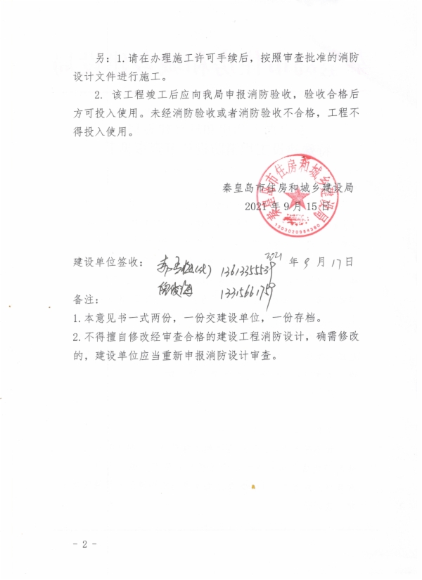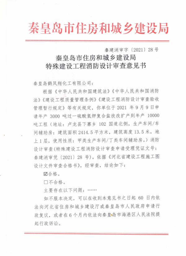秦建消审字〔2021〕28号特殊建设工程消防设计审查意见书(年产3000吨过一硫酸氢钾复合盐技改扩产到年产10000吨工程)