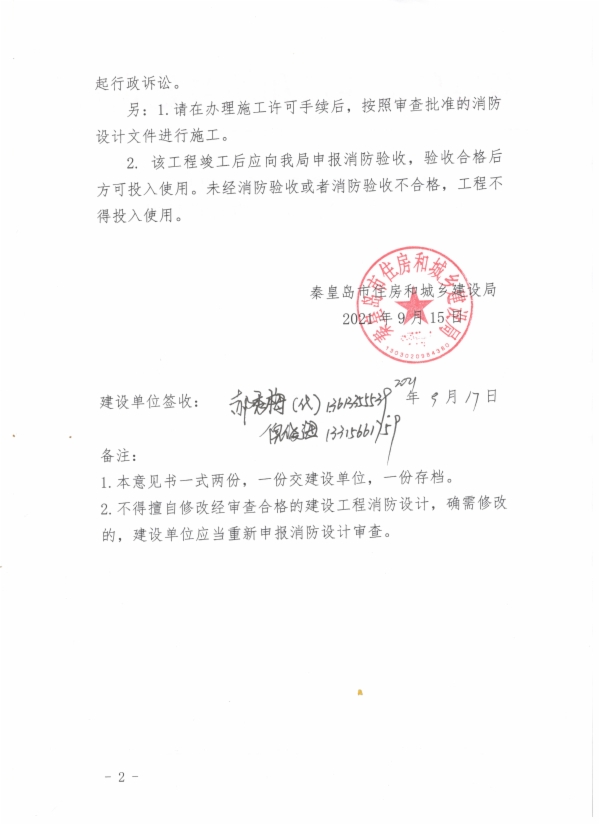 秦建消审字〔2021〕29号特殊建设工程消防设计审查意见书(3000t/a过一硫酸氢钾复合盐项目的过一硫酸氢钾车间工程和罐区工程)