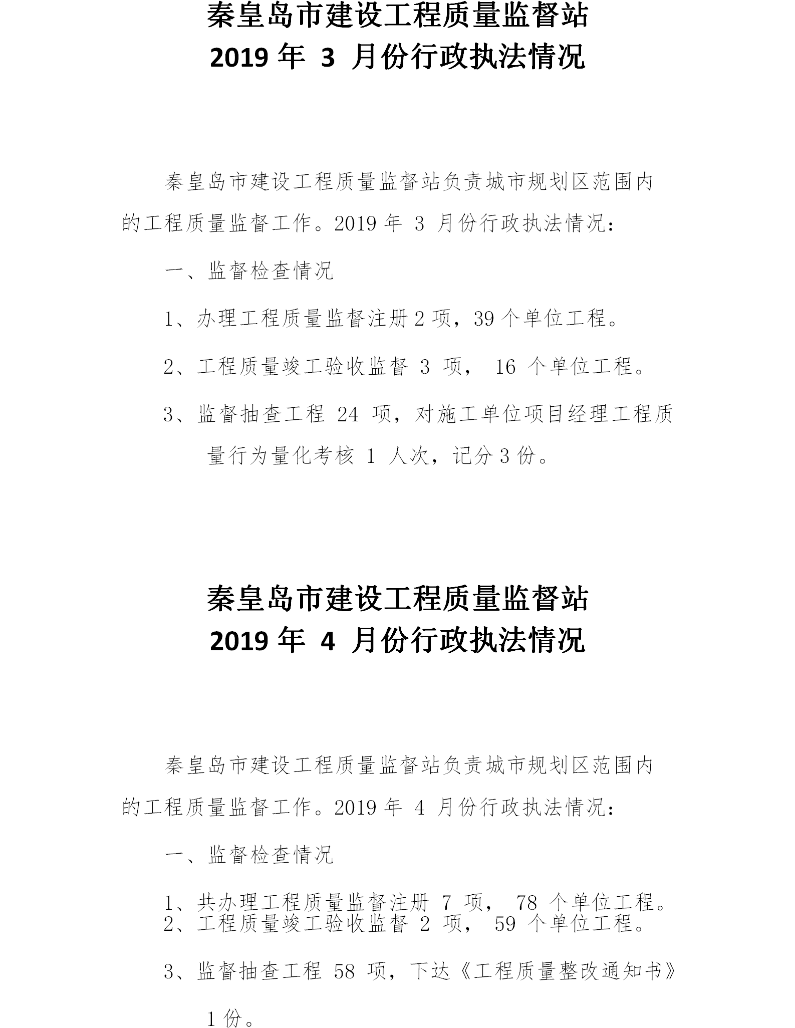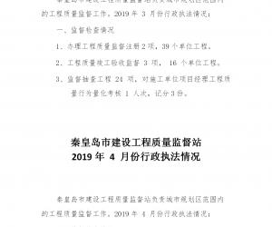 秦皇岛市建设工程质量监督站2019年 3-4 月份行政执法情况